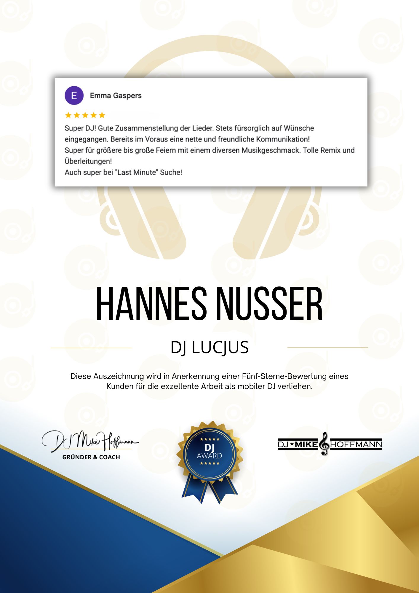 Seit über 8 Jahren begeistere ich feiernde Partygäste als DJ für großartige Events. - Gebiet: Vereinsfeiern, Firmenevents, Abifeste und vieles mehr.